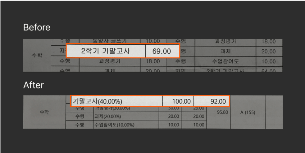 3개월 이상 수강생 중 성적 상승 비율 91%